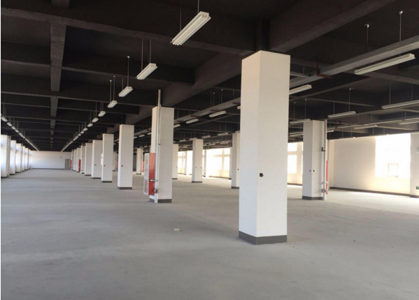 厂房三:四层,每层828平米,跨度16.3米,长49.9米,一、二层为办公室和展示厅,新装修,拎包入住,层高4.5米,一头货梯一头厕所;